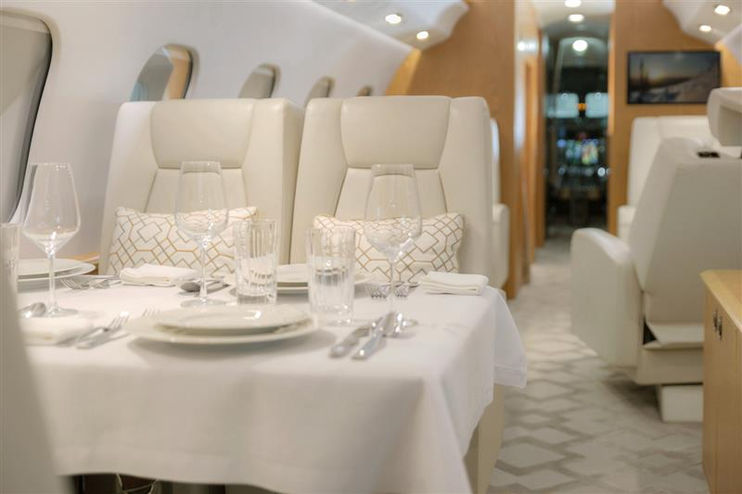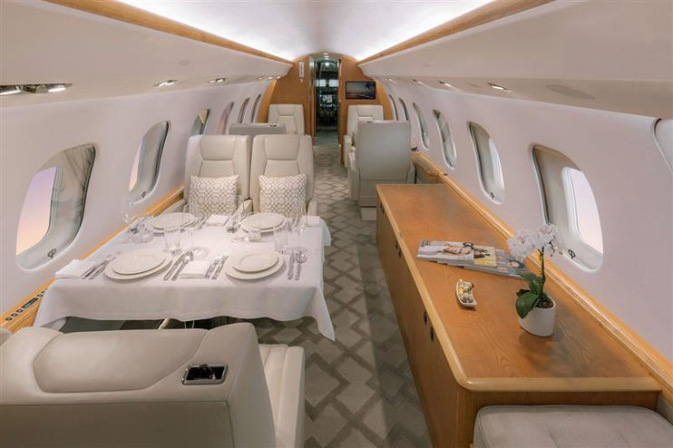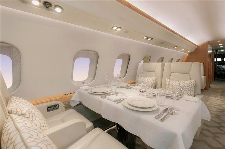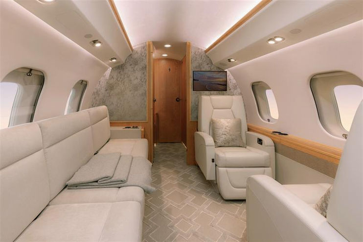 Original 13 passenger interior, with crew rest, Forward and aft lavatories, Four club seats in forward area, four place conference table in mid section with credenza, three place divan on right side and two club seats on left side in aft area