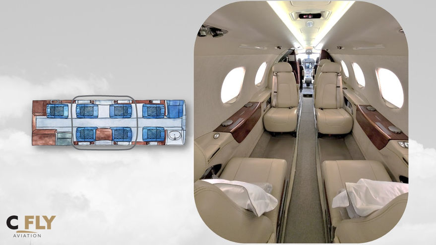 Configuração executiva para 8 passageiros + 2 Pilotos.